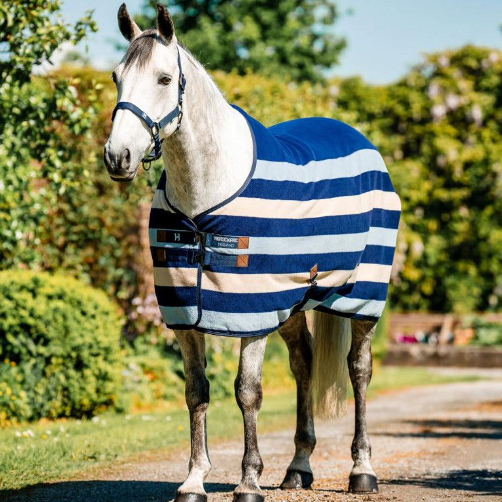 Add a touch of luxury to your pony's wardrobe with the Horseware® Newmarket Pony Fleece Cooler, featuring our iconic stripe pattern. Beautifully soft, the high-quality fleece is double bonded and anti-pilling. Its exceptional breathability and moisture-wicking properties make it ideal for stable use, travel, or show days.