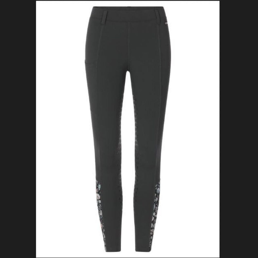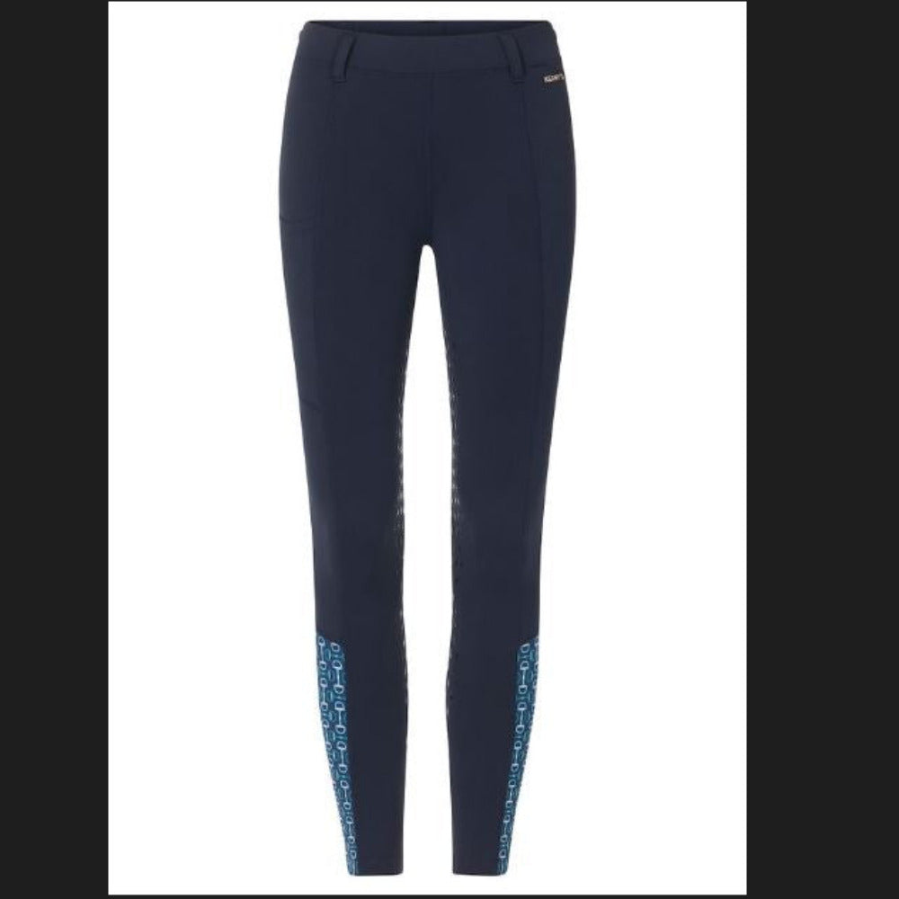 A step up in warmth and grip for when chilly weather tempts ponies to prance, these comfy kids tights are ideal for shoulder seasons. The lightly brushed interior insulates while supple Kerrit Sticks™ Silicone along the inner thigh and leg add grip. Fun contrast calf panels match their favorite prints. One side pocket holds treats for horse and rider.