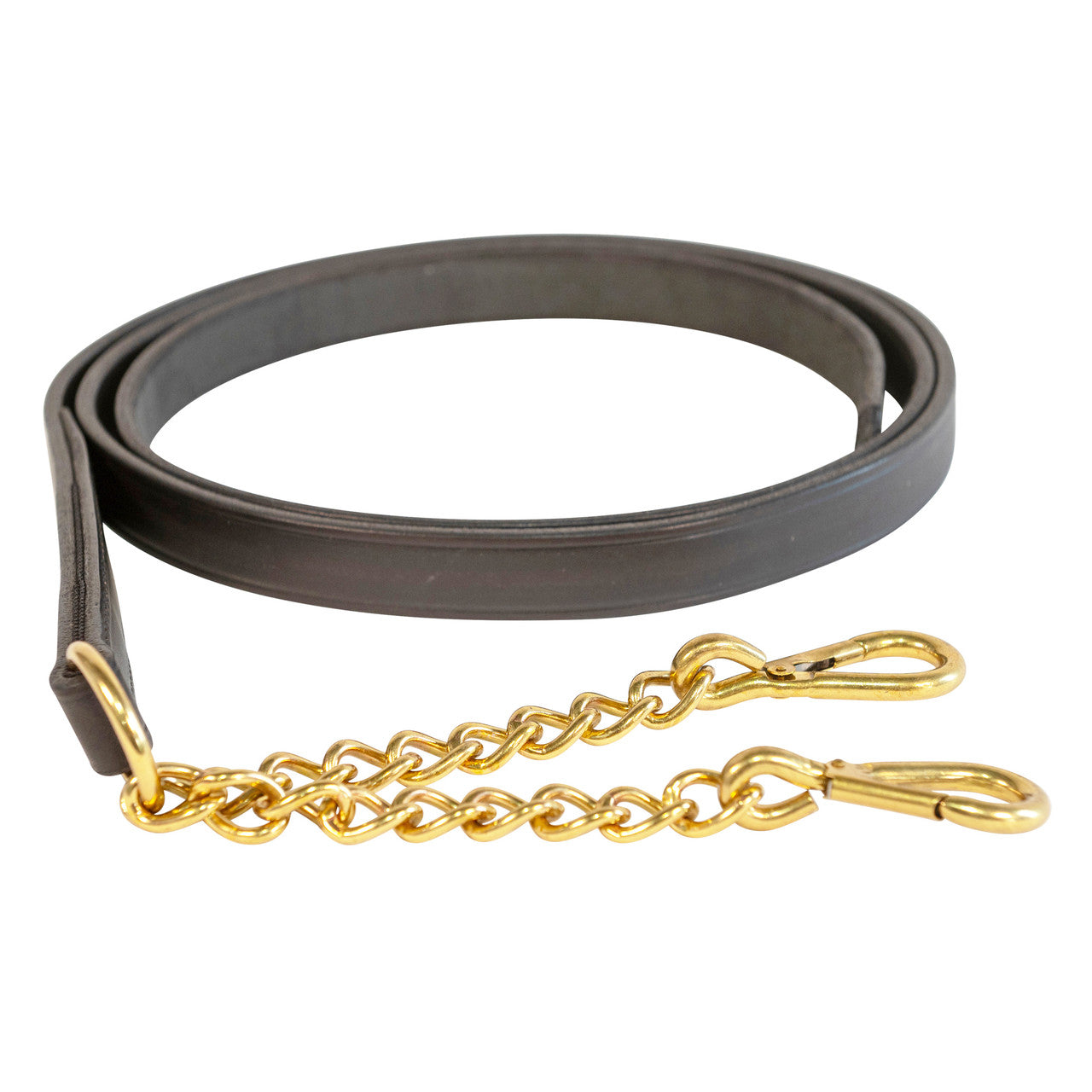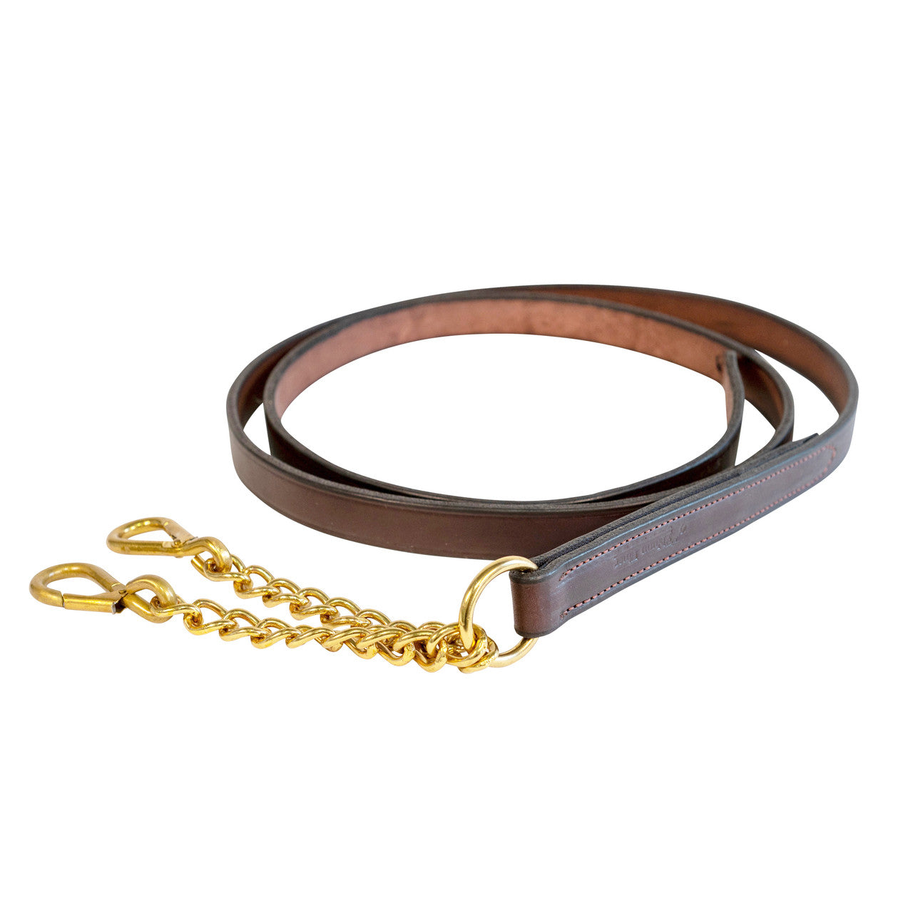 When you want to present a truly finished picture for jog out or in-hand classes, our Newmarket Shank adds just the right touch. The split chain allows for easy attachment to a bit while wearing a bridle. Premium bridle leather with a solid brass split chain.
