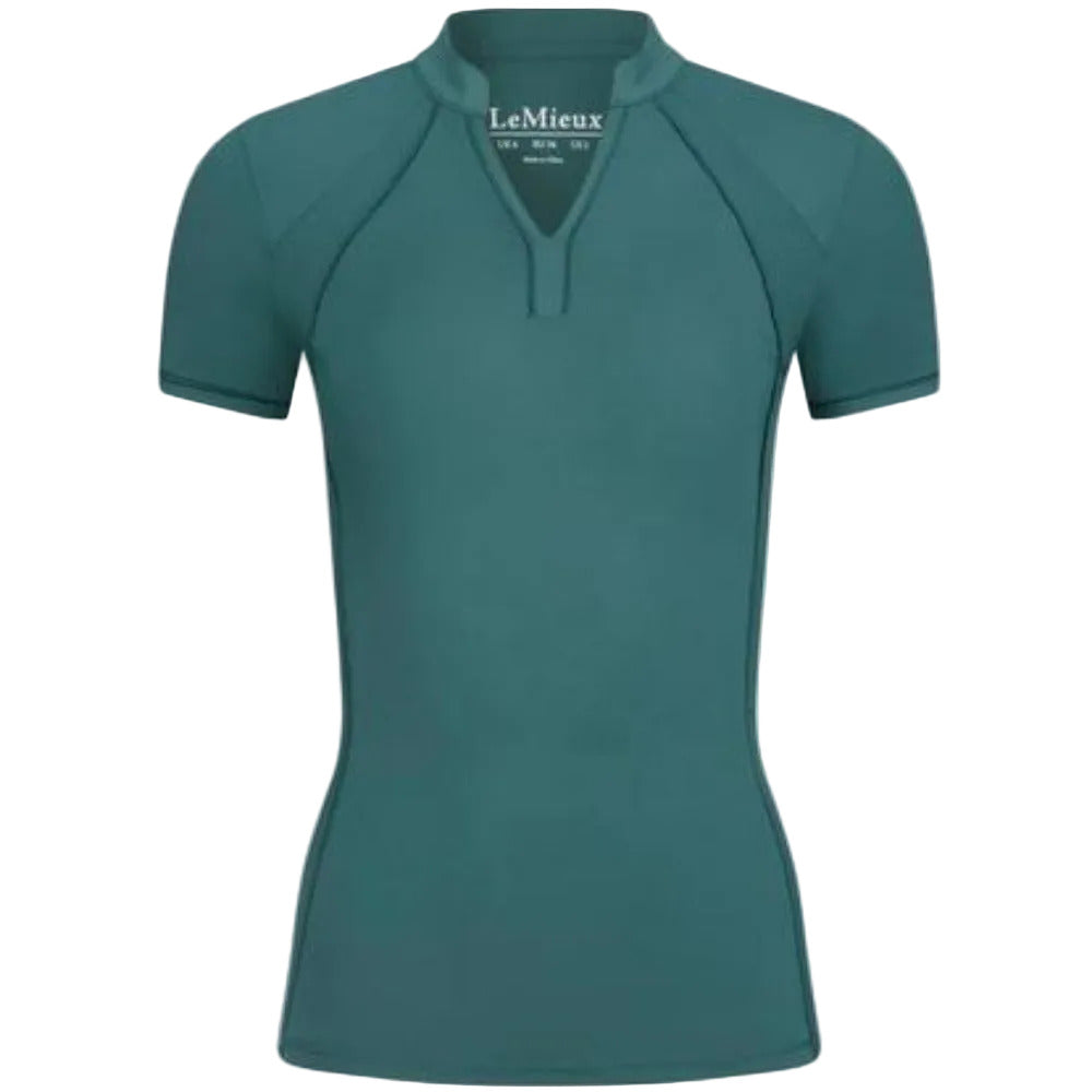 Get the feminine edge in this contemporary classic base layer with a technical twist. The super-flattering neckline features a notched neck with a band collar, offering structure in the front of the piece, which is athletic yet open. The mesh side panels provide technical ventilation and breathability, while the style contours fit and flare over the body. Satin piped details lend subtle sophistication and gloss silicone LeMieux branding catches the light for an elevated look.