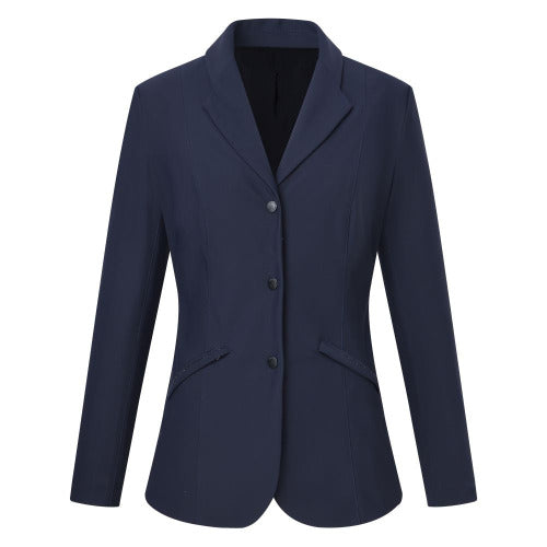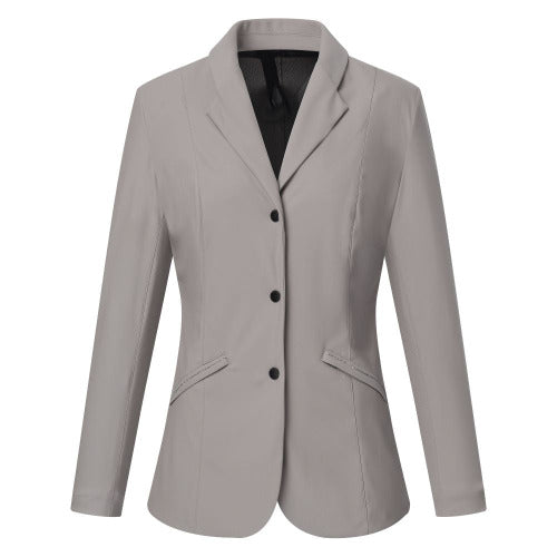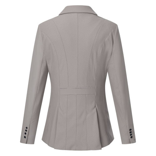 Competition jacket with elegant feminine lines on the back panel * Fabric with airflow function in the back panel * Refined artworks on the front pockets and back panel * Horsehead rhinestone logo on the left arm * Closure with zipper and 3 buttons at center front.